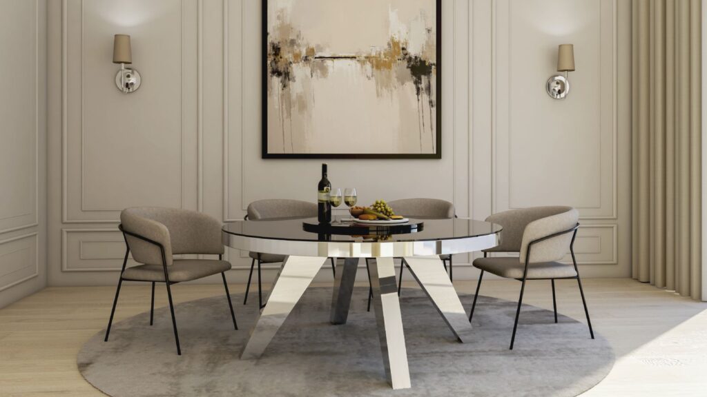 Wśród wielu innych produktów zgłoszonych do konkursu, nasza kolekcja została doceniona za ciekawe połączenie powierzchni w kolorach czerni lub kaszmiru ze lśniącymi detalami lustrzanymi. Motyw lustra z delikatną strukturą prążka na powierzchni jest właśnie cechą szczególną wszystkich modeli efektownej kolekcji GLAMOUR. Pojawia się on jako element dekoracyjny krawędzi blatów, nóg i podstaw stołów. Ta, niespotykana dotąd linia produktów, już wkrótce będzie dostępna w sprzedaży w kilku nieszablonowych wzorach, wśród których znajdziemy funkcjonalne i efektowne stoły oraz stoliki okolicznościowe w zaokrąglonej i opływowej formie.