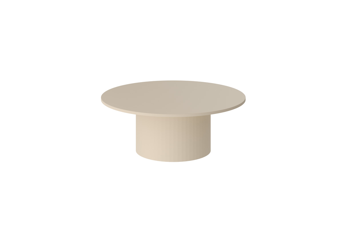 Centralnym punktem jest masywna, okrągła noga o wyrazistej ryflowanej strukturze. Pionowe prążkowanie to najmodniejszy trend sezonu. Nadaje jej teksturę a jednocześnie podkreśla stabilność i charakter całej formy. Ryflowania subtelnie załamują światło, dodając bryle głębi i nowoczesnego wyrazu. Ława występuje w dwóch wymiarach (jako duet Corto i Alto), które doskonale prezentują się zarówno samodzielnie, jak i w zestawieniu ze sobą, tworząc harmonijną kompozycję w przestrzeni salonu.