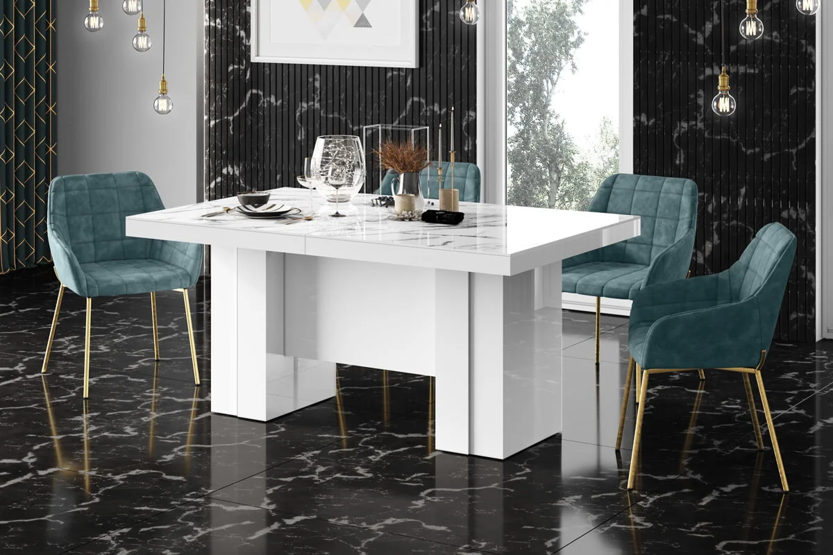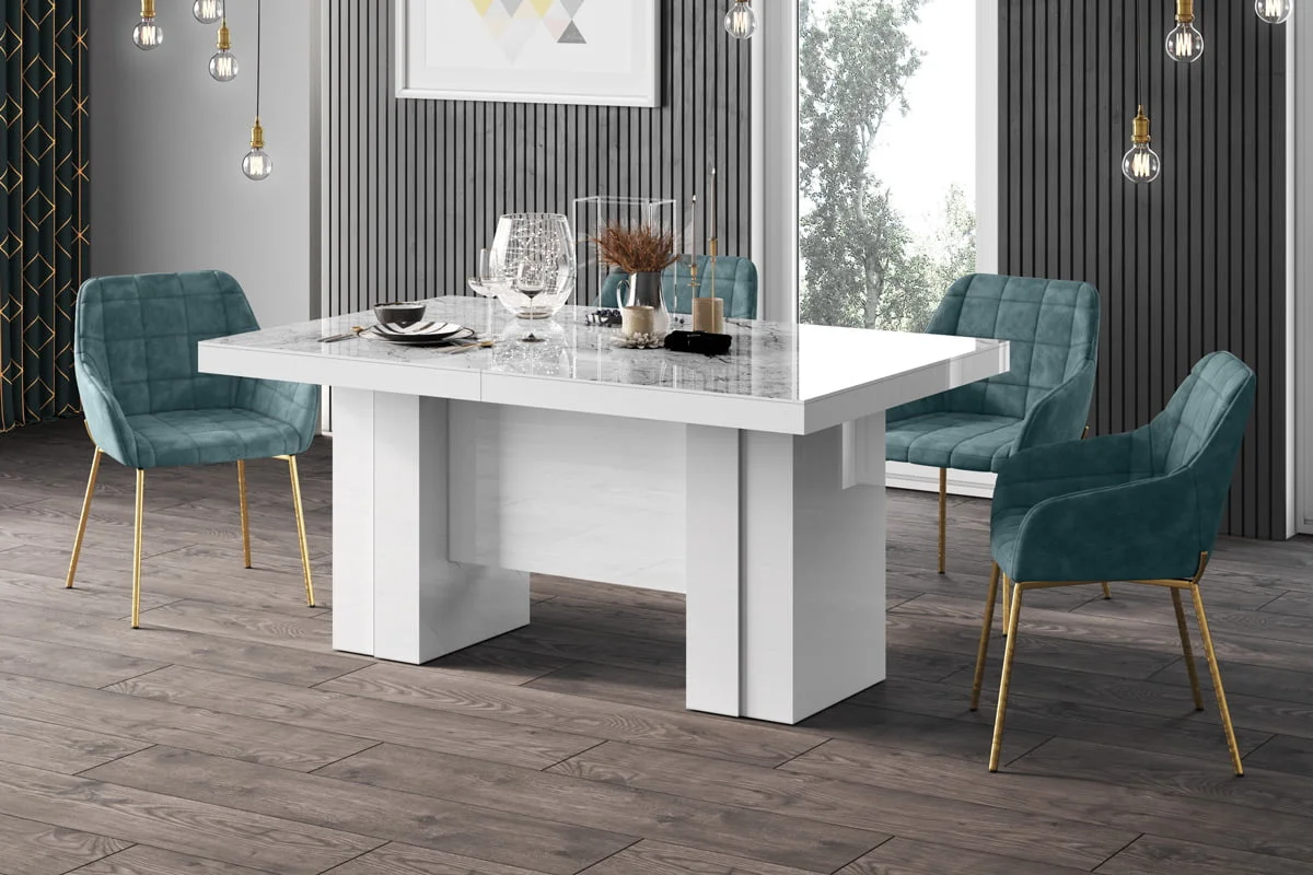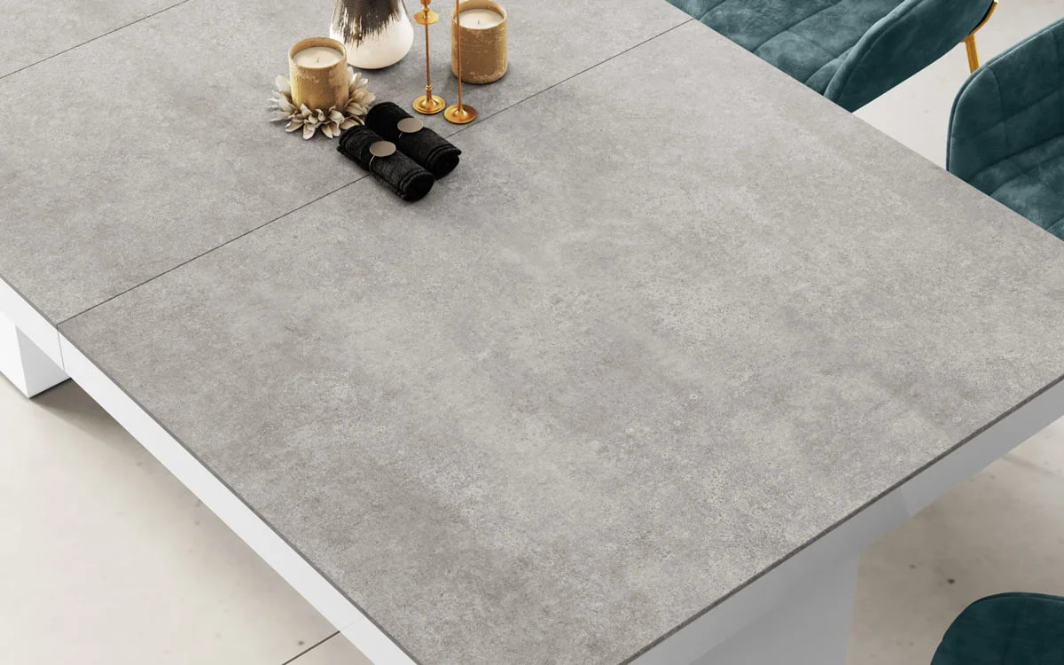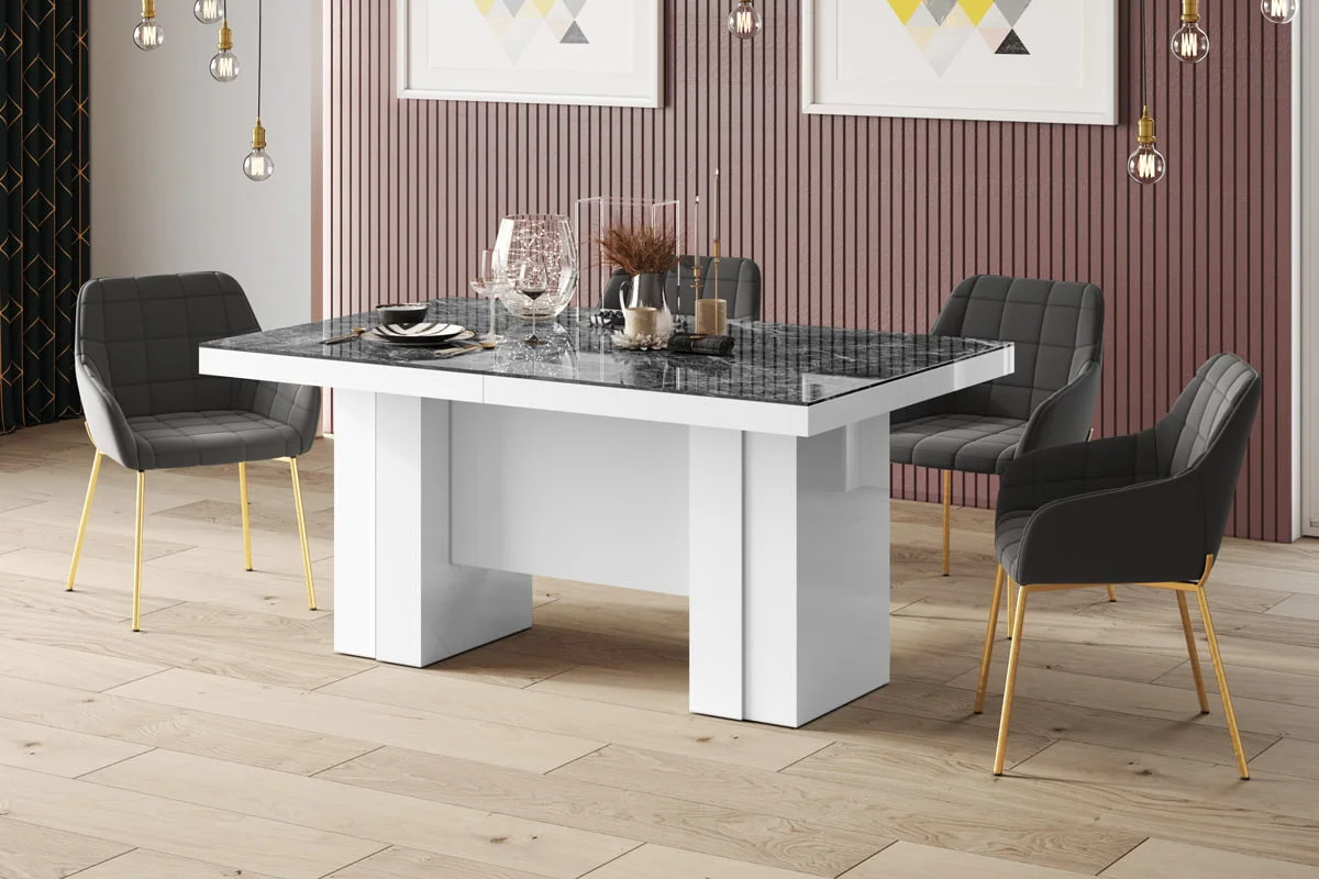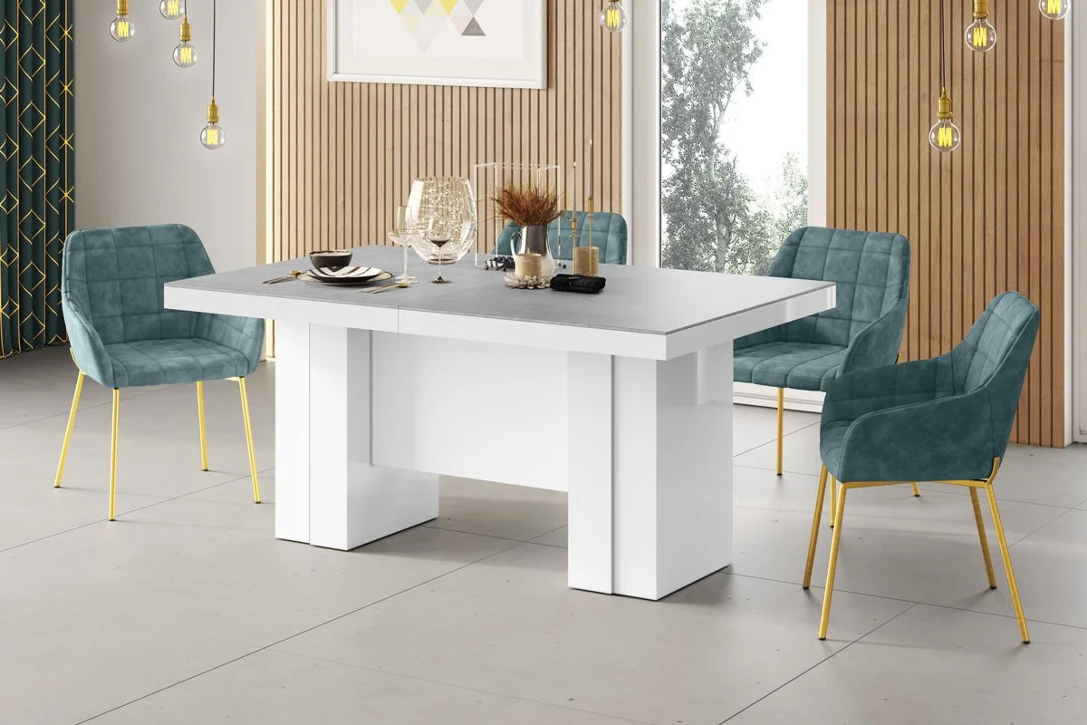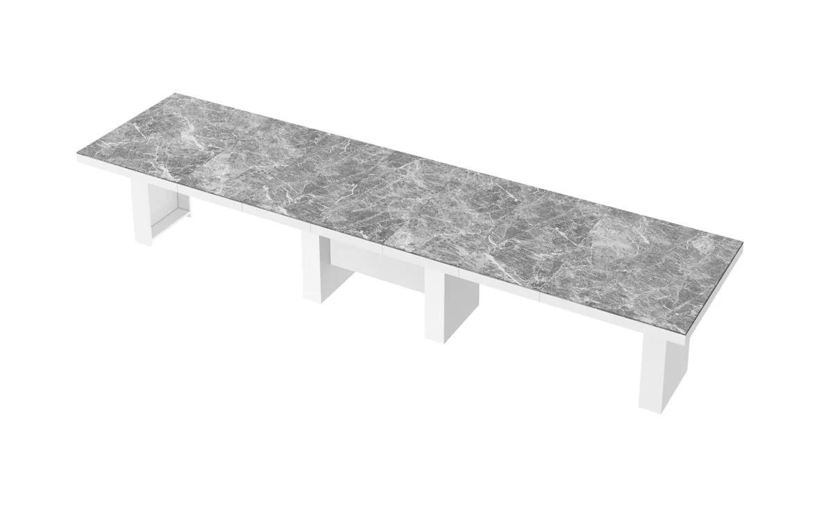 model rozkładany od 160 cm do 400 cmStół LARGO został zaprojektowany jako jeden z największych dostępnych na rynku stołów. Rozkłada się od 160 cm do maksymalnie 400 Cm i z łatwością pomieści nawet do 20 osób. Blat główny opiera się na szerokiej, nowoczesnej, minimalistycznej w design kolumnie, która w środku wyposażona jest w schowek na dodatkowe blaty powiększające. Konstrukcja kolumny (jej usytuowanie 22 cm nad podłogą) to zabieg celowy zapewniający większy komfort i swobodę usytuowania nóg osobom siedzącym przy stole. Wpasowując się w nowoczesne trendy, a także dla zachowania odpowiednich proporcji stołu, blat został pogrubiony.