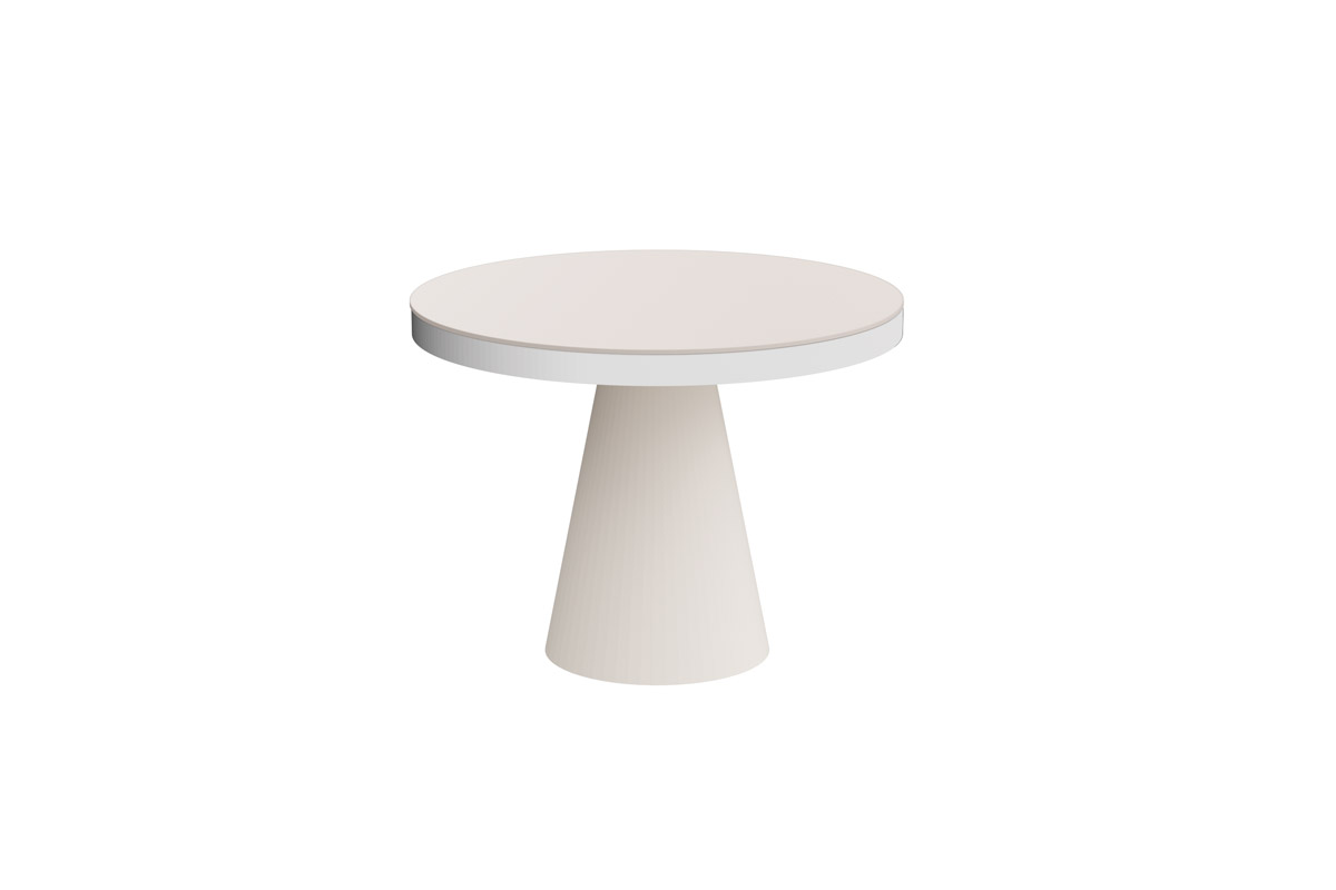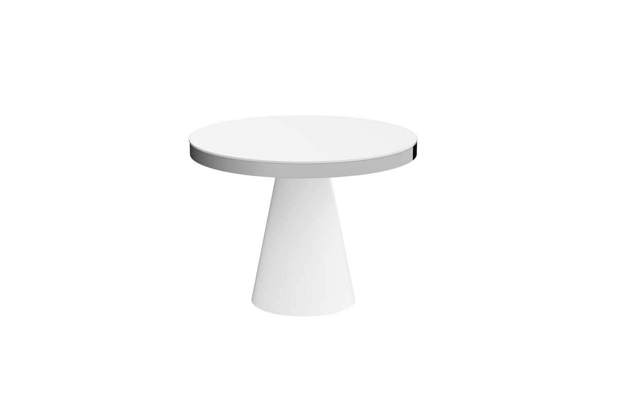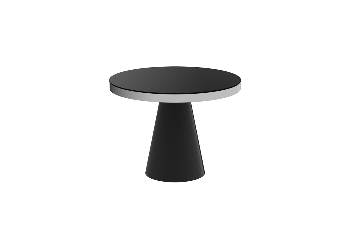 Stół TOLEDO GLAM zachęca swoimi optymalnymi wymiarami i oryginalną formą do kameralnych spotkań. Okrągły blat stołu z efektowną, delikatnie prążkowaną lustrzaną krawędzią jest osadzony na stabilnej kolumnie w kształcie ściętego stożka.