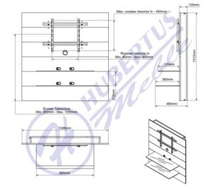 UWAGA! W przypadku montażu telewizorów 32″ może istnieć potrzeba skrócenia pionowych elementów zawiesia – standardowa długość 495mm.